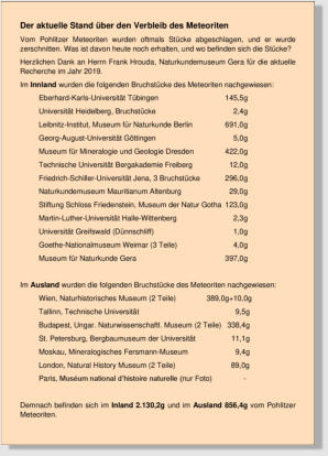 Pohlitzer Meteoriten ermittelt.