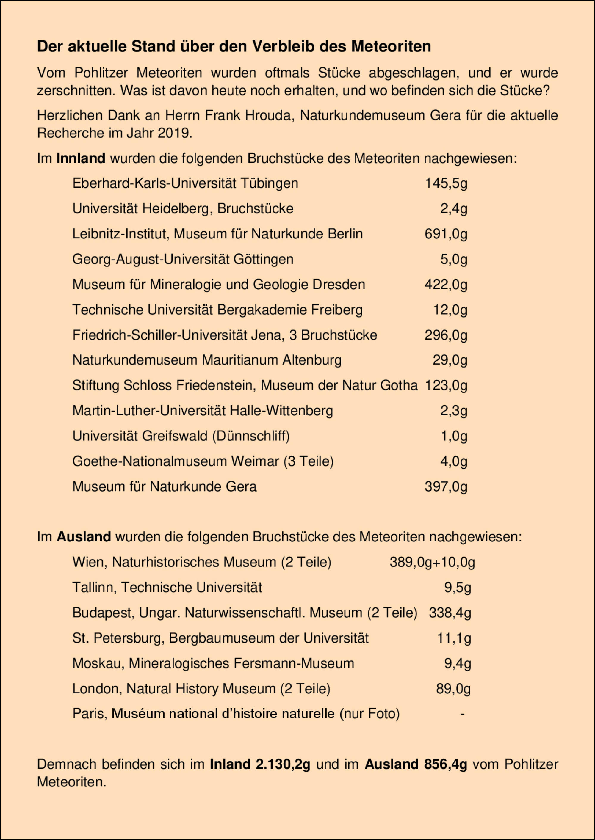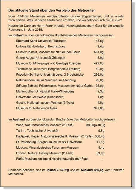 Pohlitzer Meteoriten ermittelt.